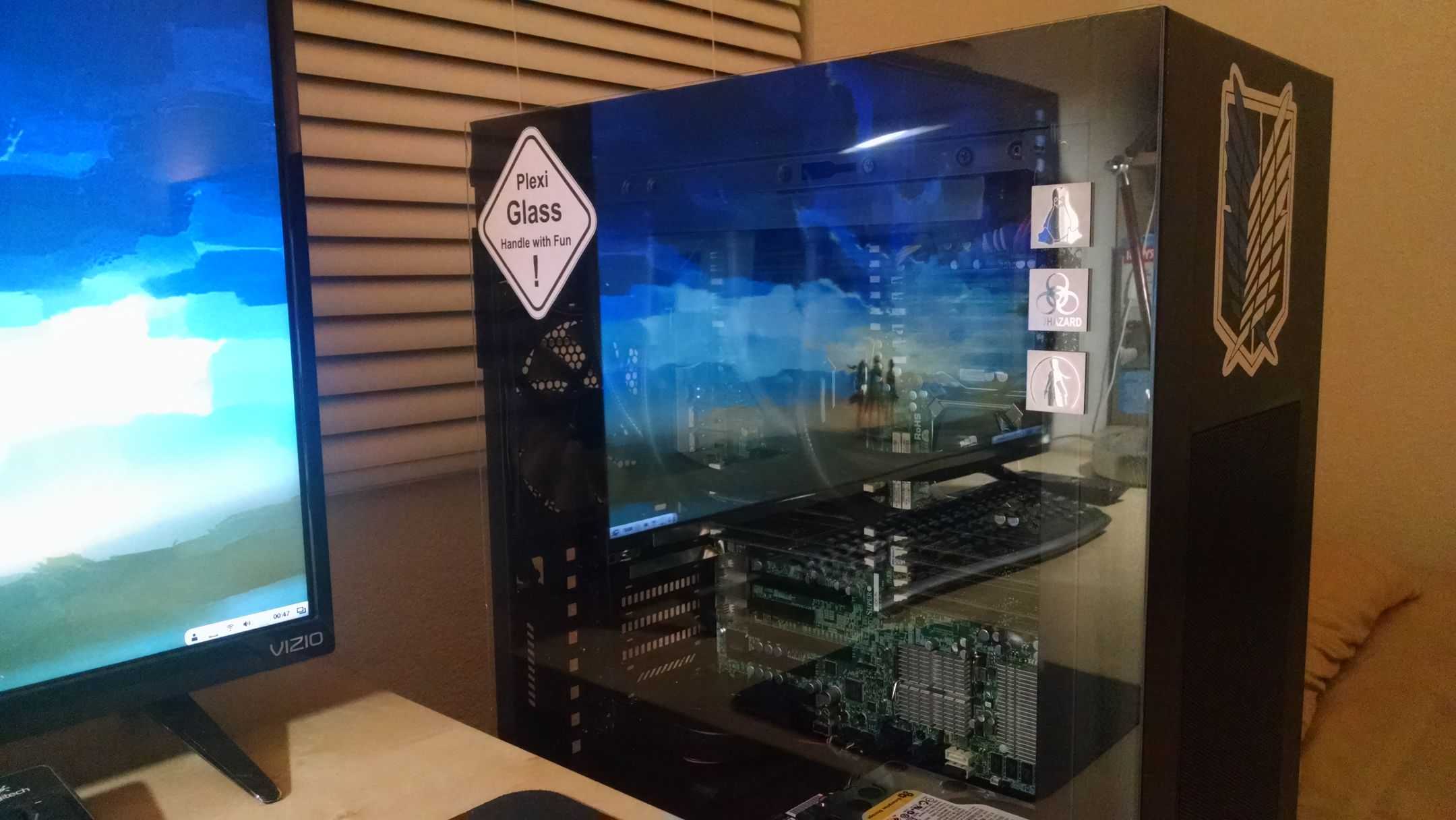 当年In Win的钢化玻璃机箱实在惊艳,答主也想仿造一个,就裁了一大块亚克力板,再贴一个标签,满足下虚荣心。