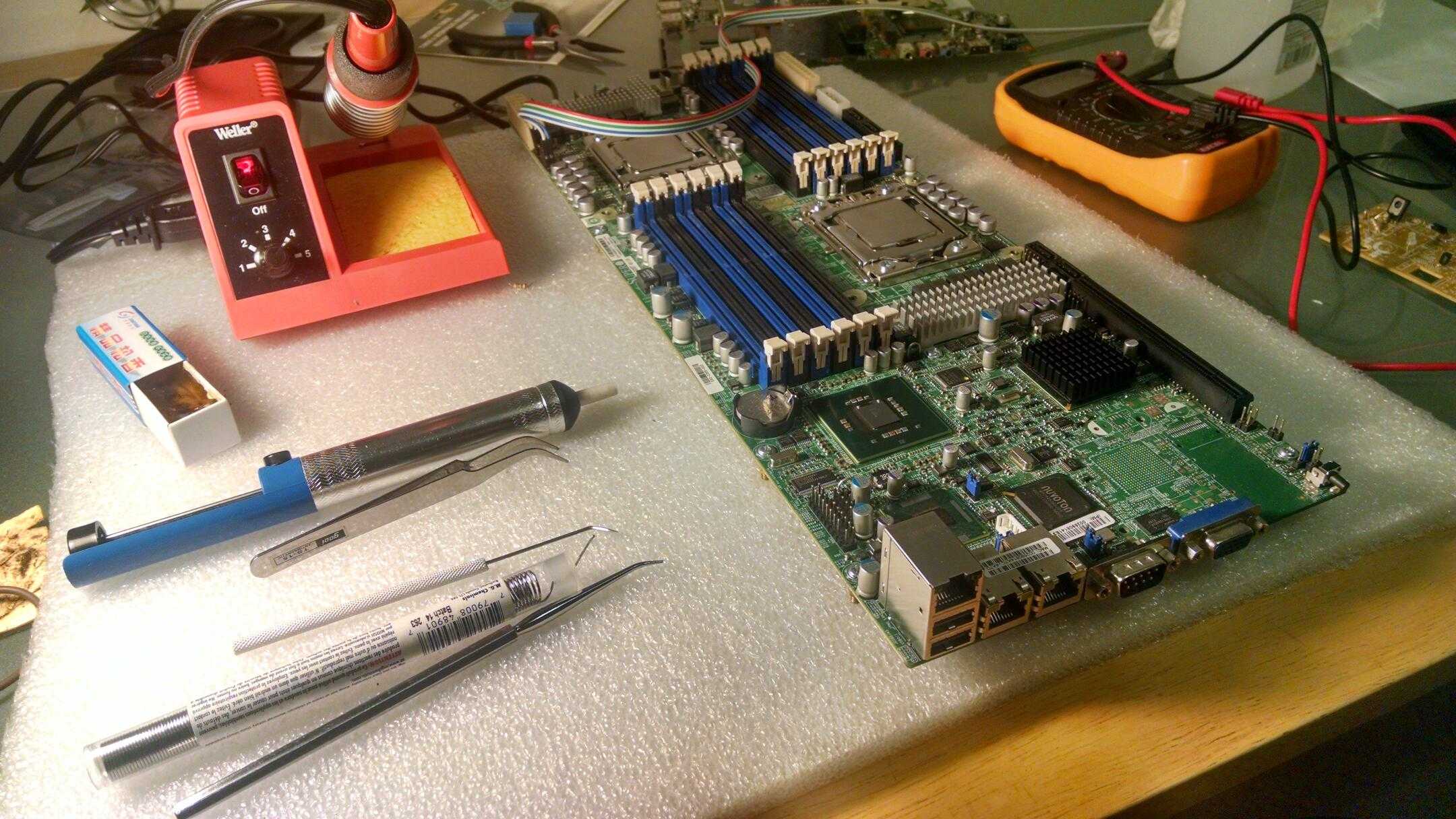 然后还有答主自诩做过电工的证据:这块服务器主板(Supermicro X8DTT),如果在某个地方拆掉一个电阻,再在另一个地方焊上一个电阻,就能破解时钟发生器,实现超频。