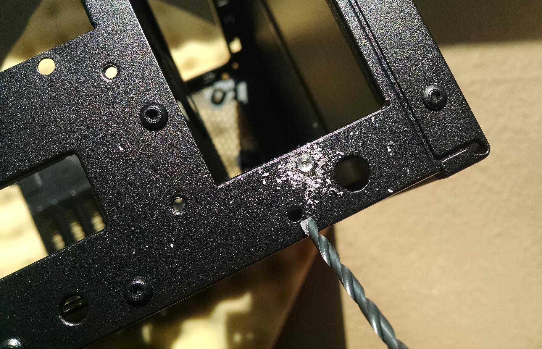 为啥打洞呢?因为服务器主板的螺丝孔往往和民用机箱不兼容,需要自己解决。