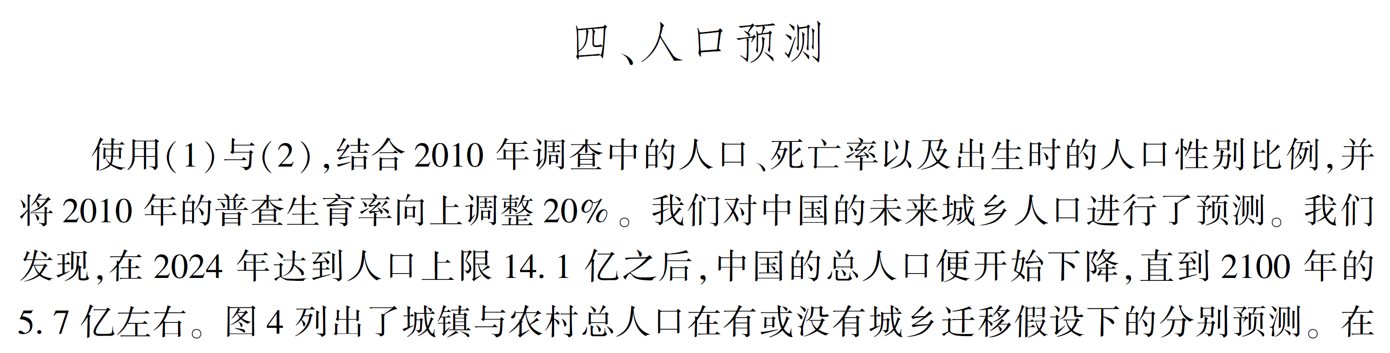 我2012年时和导师写过一篇简单的文章,2013年发表在《金融研究》上,使用了2010年人口普查数据。当时的预测结果是中国人口在2024年会达到上限14.1亿,然后开始下降。具体到每一年来看,我们的模型认为到中国人口在2017年是13.89亿(实际值13.90亿,见中华人民共和国2017年国民经济和社会发展统计公报),2018年会达到13.94亿。