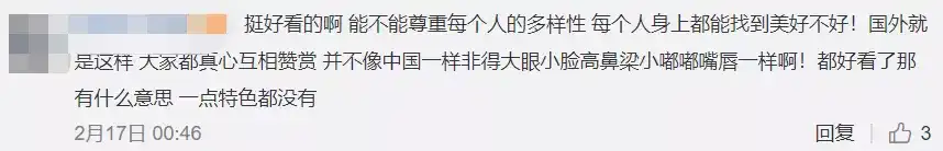 小点是小猪: 对,作者说出了我想说但是不会说的,微博确实一帮这样拿什么审美观不同,或者直接说你怎么可以觉得那个模特丑,这种话来故意呛你,呛的你不好说,说就是你的错,就是你玻璃心,真的无语,很赞同楼主,厉害! 👍🏽1 💭N/A IP 🕐2019-03-14 21:09:56