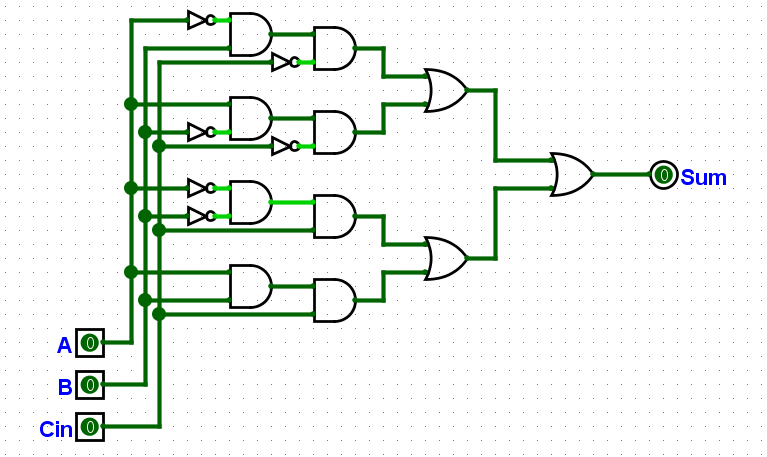 “再把或门都加上,搞定。这东西可以算出Sum了,接下来用一样的办法把C-out弄出来。”小明准备继续画。