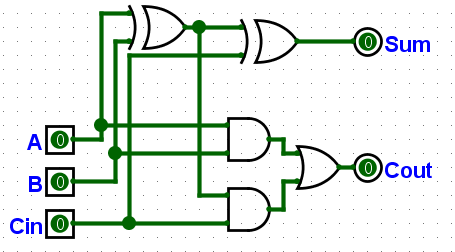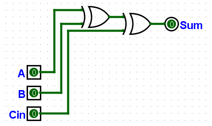 “再把或门都加上,搞定。这东西可以算出Sum了,接下来用一样的办法把C-out弄出来。”小明准备继续画。