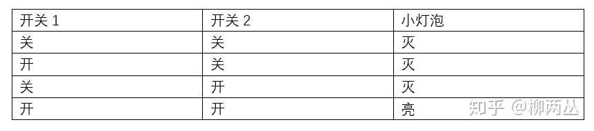 “是不是这样!”小刚激动地说,“如果0是关1是开,0是灭1是亮的话,或门的输入输出是不是这样?”小兰看了看道:“正是”。