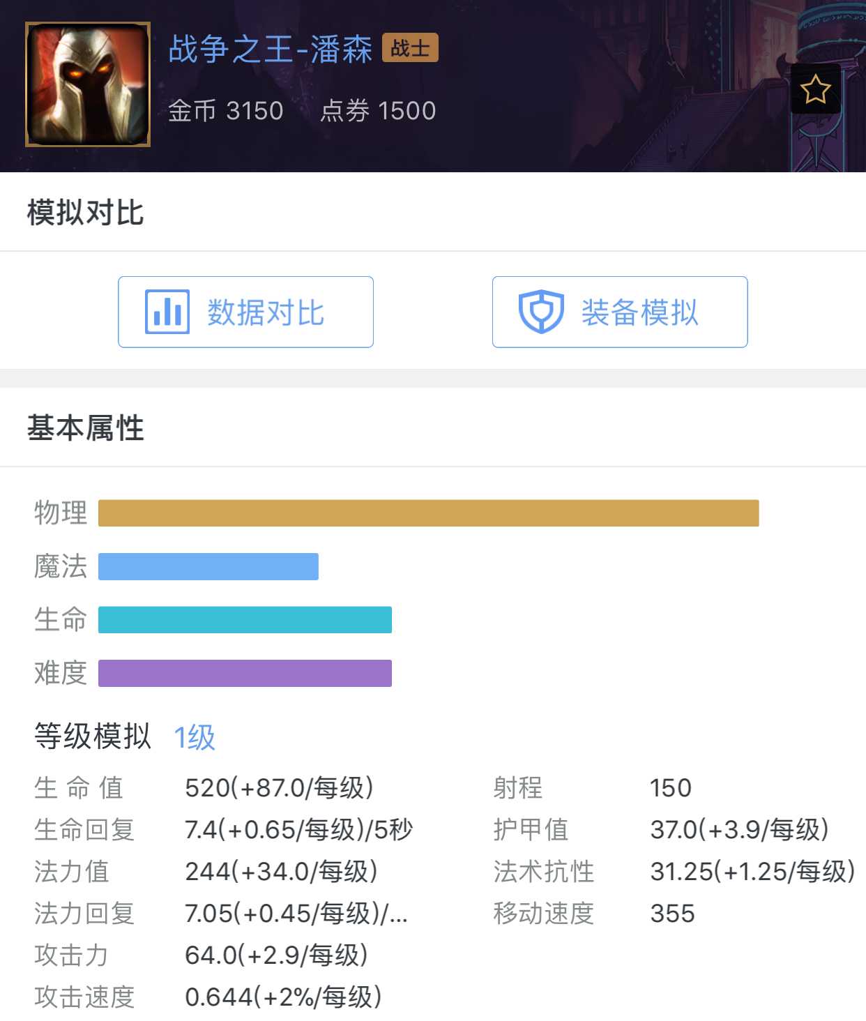 此时潘森的属性值:
