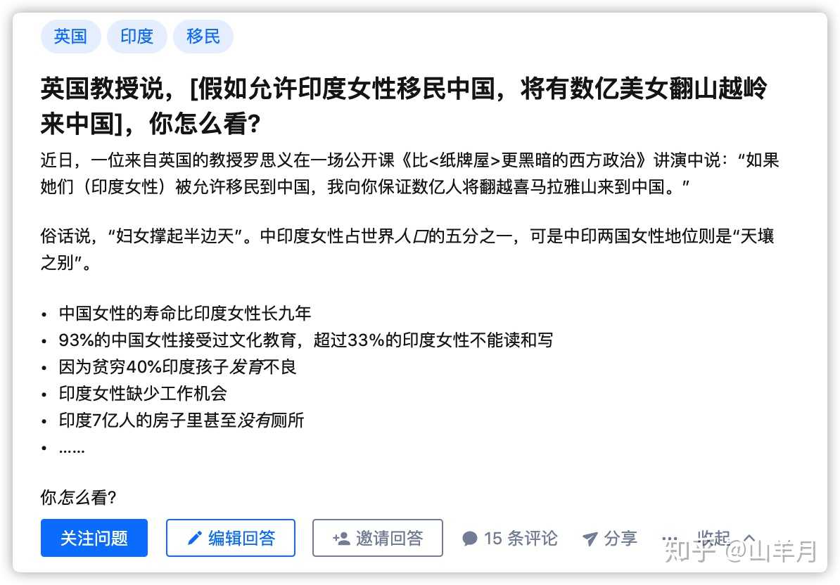 英国教授说:「假如允许印度人移民中国,将有数亿人翻山越岭来中国」,你怎么看_-山羊月