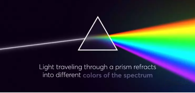 所谓“光谱”,就是把日光、星光或者白炽灯钠灯水银灯之类光源发出的可见光透过三棱镜投射到白色幕布上;由于折射率的不同,不同频率的光就会形成一条光带,从频率最低的红光再到频率更高的橙黄绿蓝靛紫依次排列: