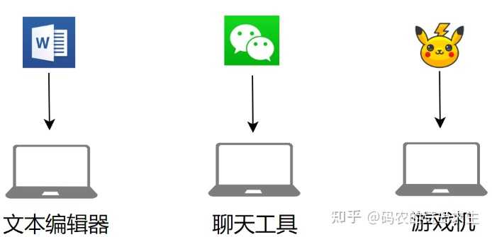 同样一台计算机硬件,安装上word你就能编辑文档,安装上微信你就能在公号中读到码农的荒岛求生、安装上游戏你就能玩王者农药,硬件还是那套硬件,提供不同的软件就是实现不同的功能,每次打开电脑使用各种App时没有在内心高呼一声牛逼你都对不起计算机这么伟大的发明创造 ,这就是为什么计算机被称为通用 计算设备的原因,这一思想是计算机科学祖师爷图灵提出的。