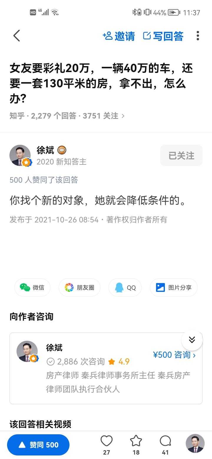 知乎用户iPMCnr: 徐律师[赞] 👍🏽4 💭山东 🕐2022-09-15 15:38:59
