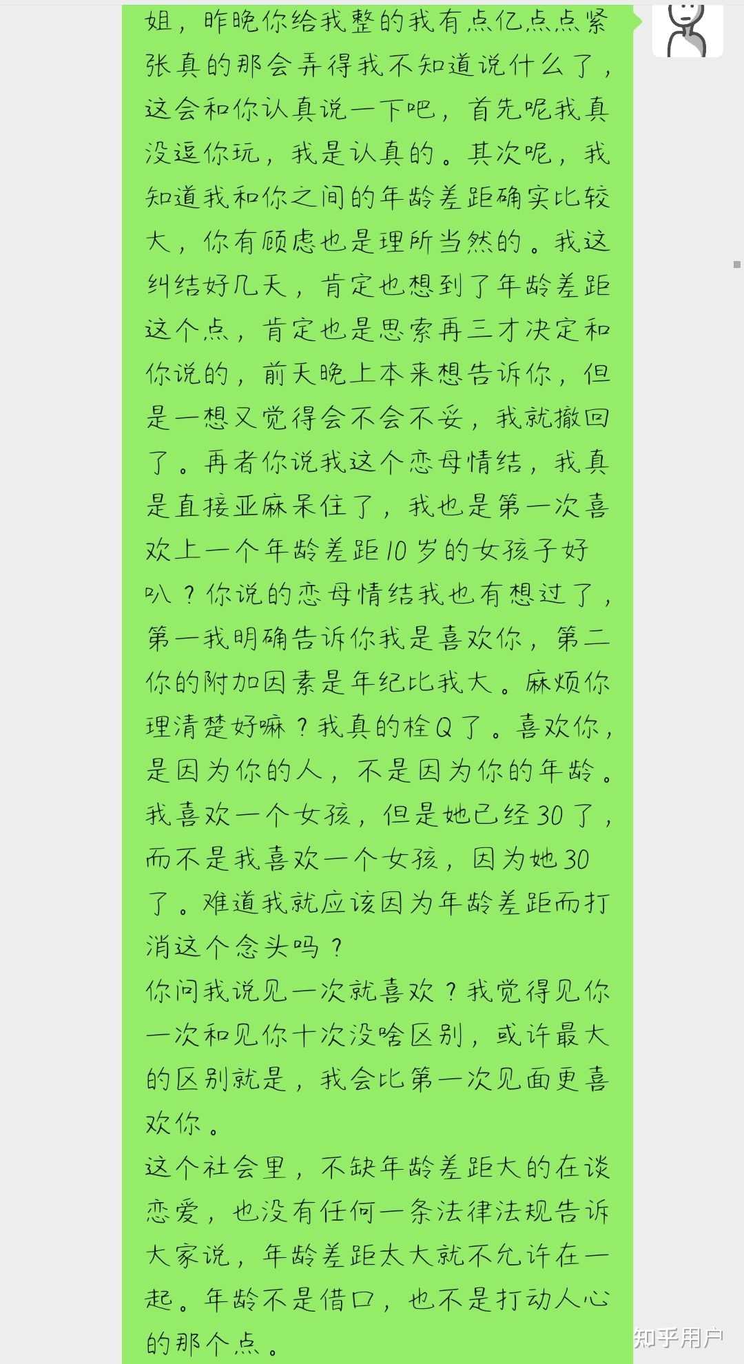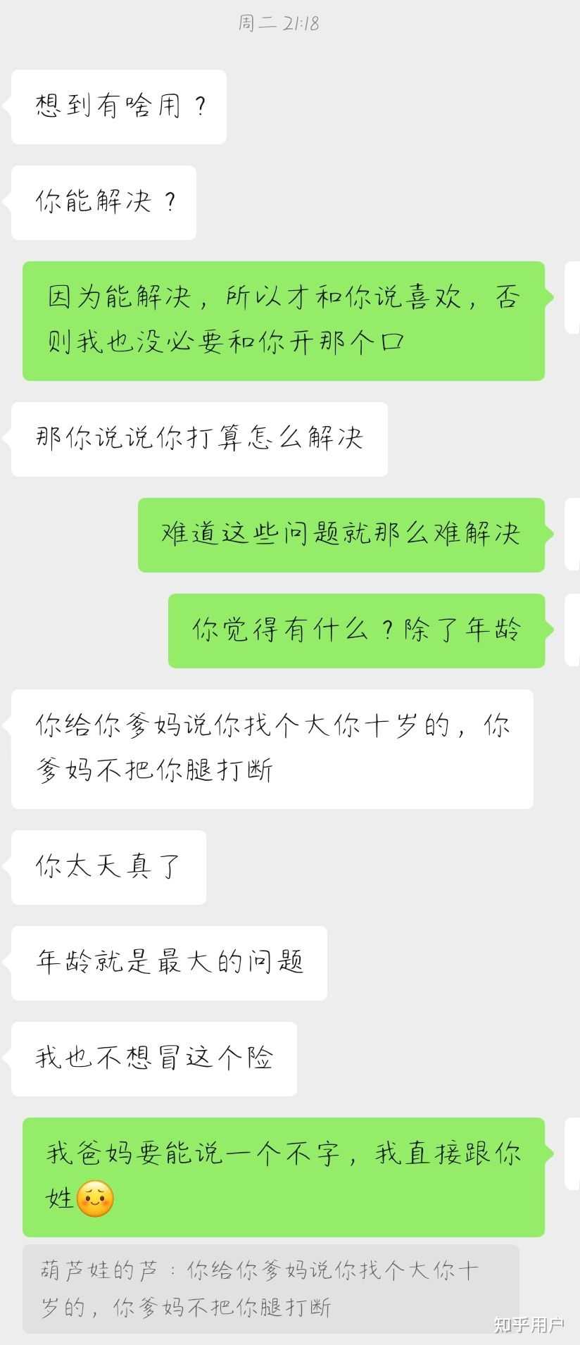 从确定喜欢她,因为她的年纪的确让我有很大的顾虑,所以刚开始我就和父母进行了细致慎重的沟通。(别杠我说什么还没谈就和父母说,妈宝男啥的。这种话就闭嘴直接跳过我的回答谢谢。因为我要对她负责任,我不能因为父母的因为她年纪比我大的原因最后功亏一篑,她也有这个顾虑,所以我既然谈,那就最好把能解决的问题尽量都提前解决了,以后不会因为这个而烦恼和后悔。)