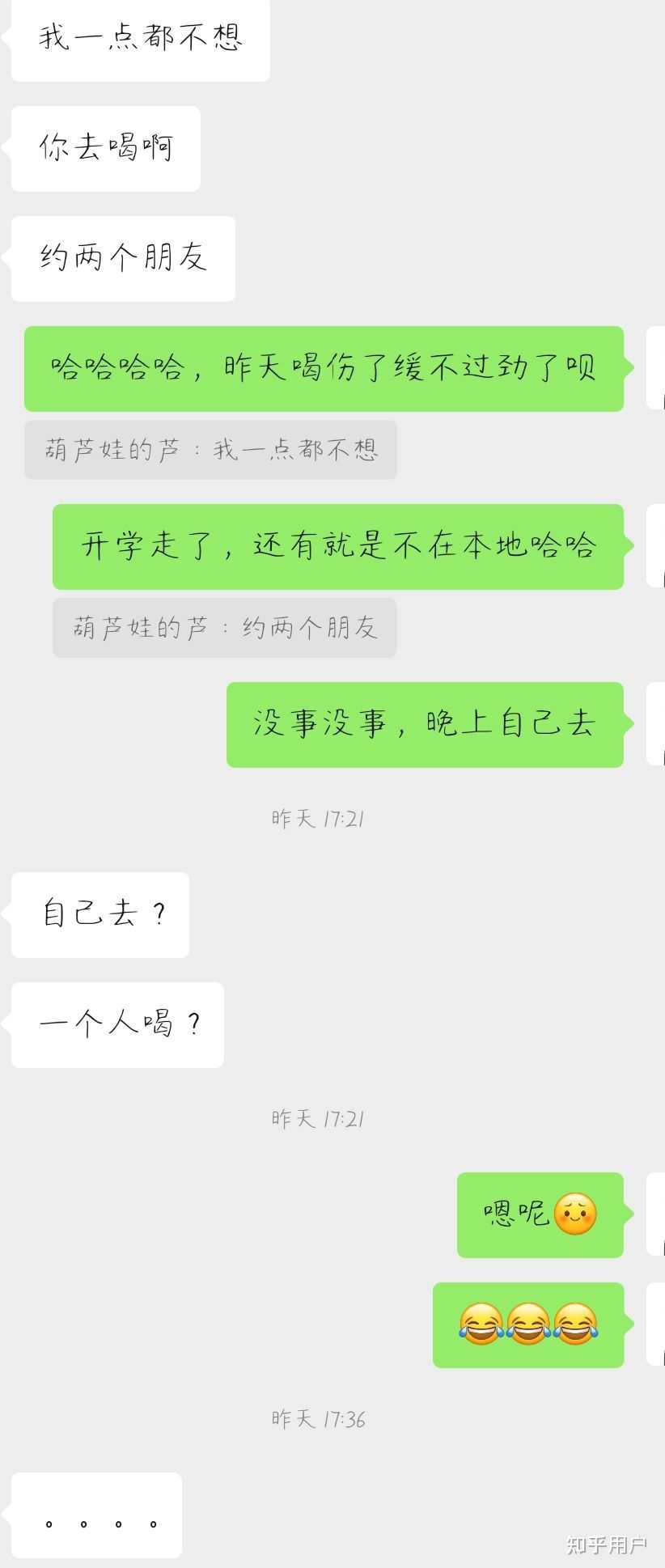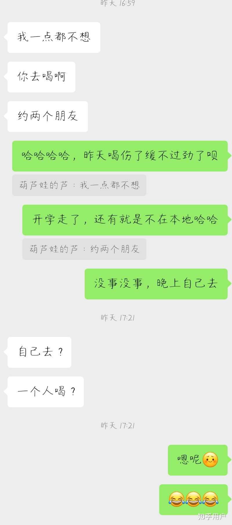 微微: 要不,干脆点,给人家说句对不住打扰这么久,放弃,要不就把微信聊天放弃,换个方式,你聊天真的不加分 👍🏽0 💭山东 🕐2022-09-28 02:03:07