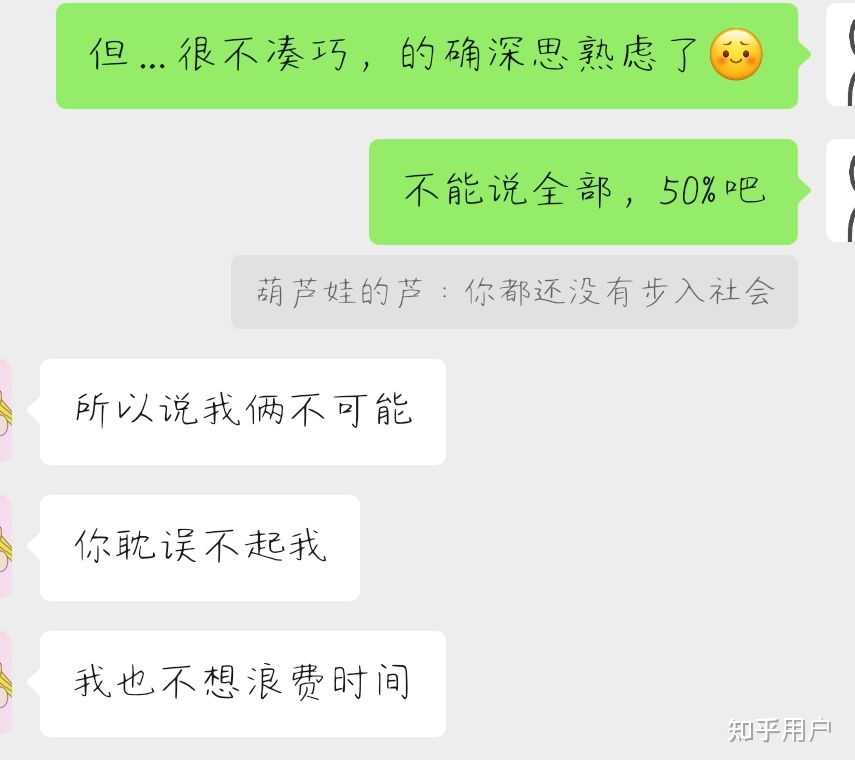 其实和她说完自己的想法后,我想过很多东西。她的年纪也确实摆在眼前,说实在的,我耽误不起她,假设我和她在一起试试,这种试错的成本她远高于我。就算我和她未来某天分开,或许对我来说我不会有太大的影响,但是对于她来说,她浪费在我身上的时间和精力是何其重要啊,是无法挽回的!我也有考虑过自己的家庭条件以及家庭环境,对于车和房这两个点,我倒不是非常担心,因为这方面的话,家里会在我工作后给予较大的帮助,可以让我不用有太大的压力和太多的顾虑。工作和存款这方面,需要的是时间的沉淀和发酵,没办法按下加速键来个二倍速哈哈只能埋头苦干。