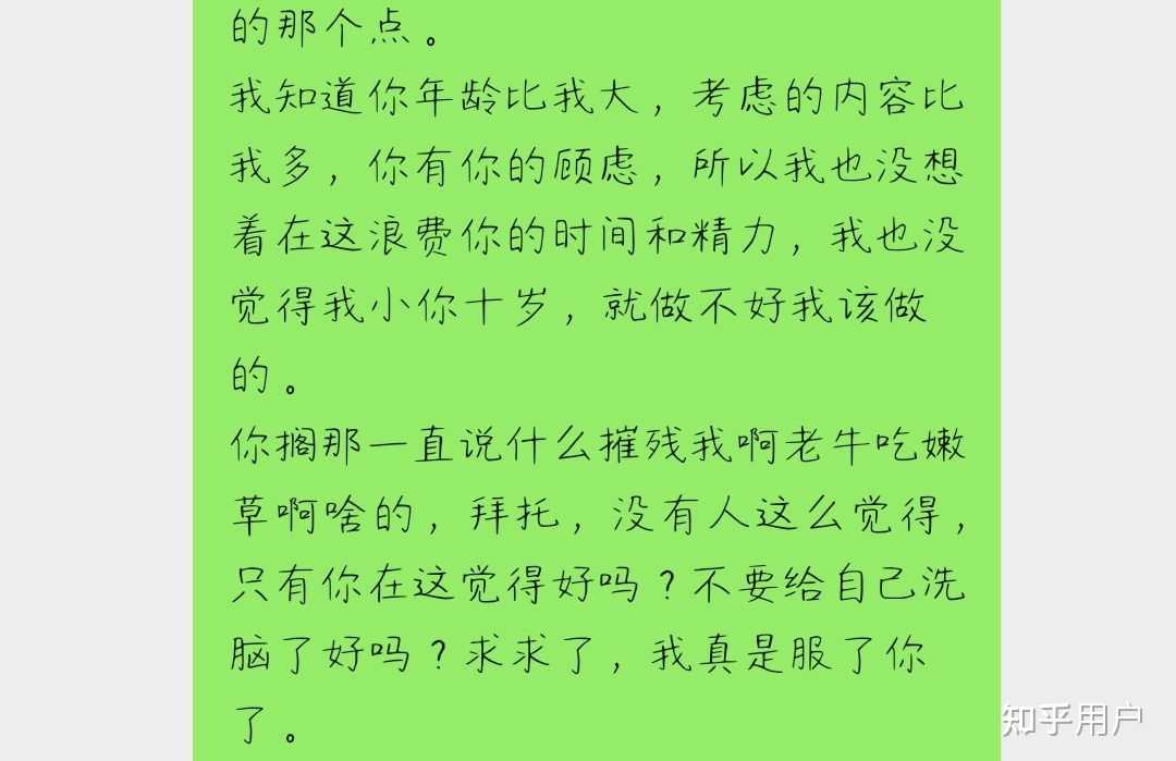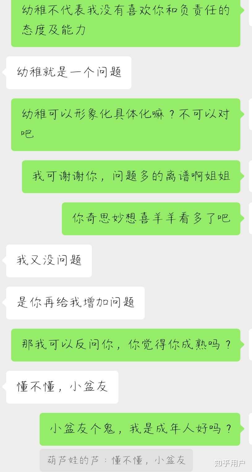 毕竟她年龄确实比我大一些,有自己的顾虑也是应该的,我就是一整个的彻夜未眠哦,唉,不知道想些啥乱七八糟的。从我提出我的想法,她就在说什么老牛吃嫩草啦,自己是黄花菜啦,我太小了她是中年人了吧啦吧啦的。最离谱的是给我来了句我是不是恋母情结,我看到的第一个瞬间,我整个人懵了,我靠,什么情况啊,我有病吧我,恋母?我恋个锤子的母哦。我真是想了半天我都没想通,她从哪给我整出来这么个词条,我真是服了她这个脑洞了,怕是奇思妙想喜羊羊看多了我嘞个亲娘啊。