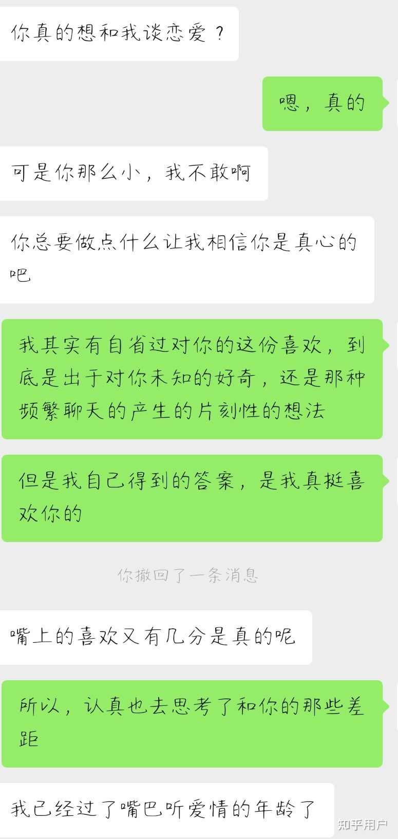 我跑去和人家表白了哈哈,咱就是说有点失败,被说太小了不合适。那天我犹豫不决,一遍一遍问自己要不要告诉她,我犹豫的没办法跑去微信摇骰子哈哈哈哈,单数就不说,双数就告诉她,好巧不巧整出来个4哈哈哈哈,字编辑好在对话框里停留了好久好久,才下定决心发给她(真的,第一次心在那扑通扑通的跳,我坐在那里明显能感觉到心跳加速的那个过程,她不回消息的那一会,我真的超级紧张超级慌)咱就是说,这种感觉一点都不好玩。
