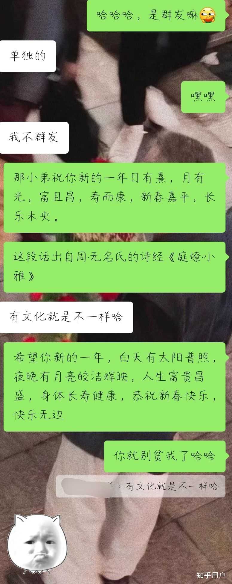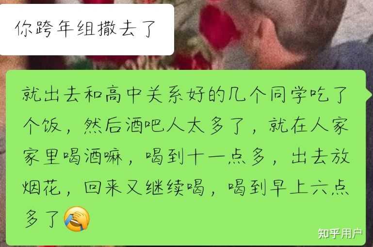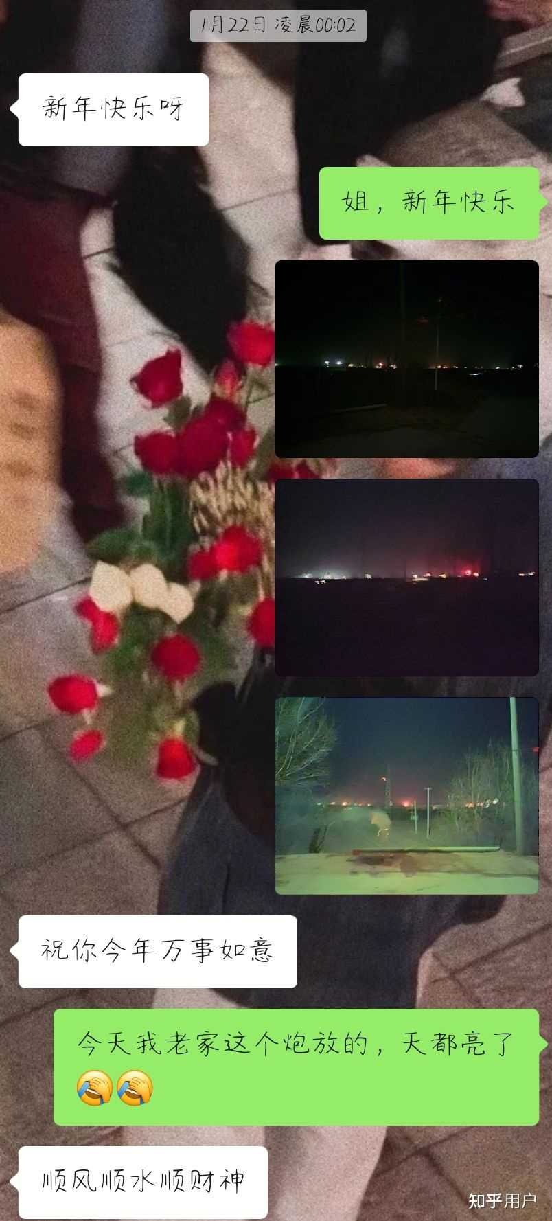 然后就偶尔聊几句,一直到了跨年那天,和同学发小出去聚餐哈酒哈哈哈,到了零点酒桌上一帮狗怂就开始不干人事,不打牌摇骰子开始卡着零点发朋友圈和别人发消息,我和爸妈说完新年快乐,就顺手给他也发了一条过去。