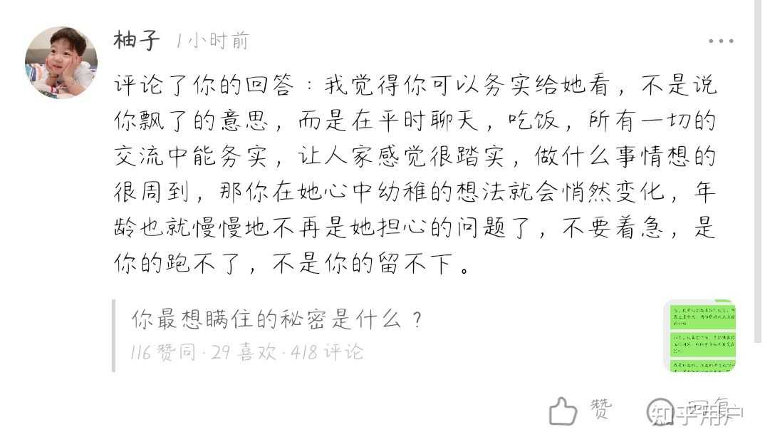 知乎用户zW5wlH: 这个女的跟你分享日常就说明已经心动了,还要装矜持,就差你临门一脚了,相信我[惊喜] 👍🏽0 💭山东 🕐2022-09-27 15:59:48