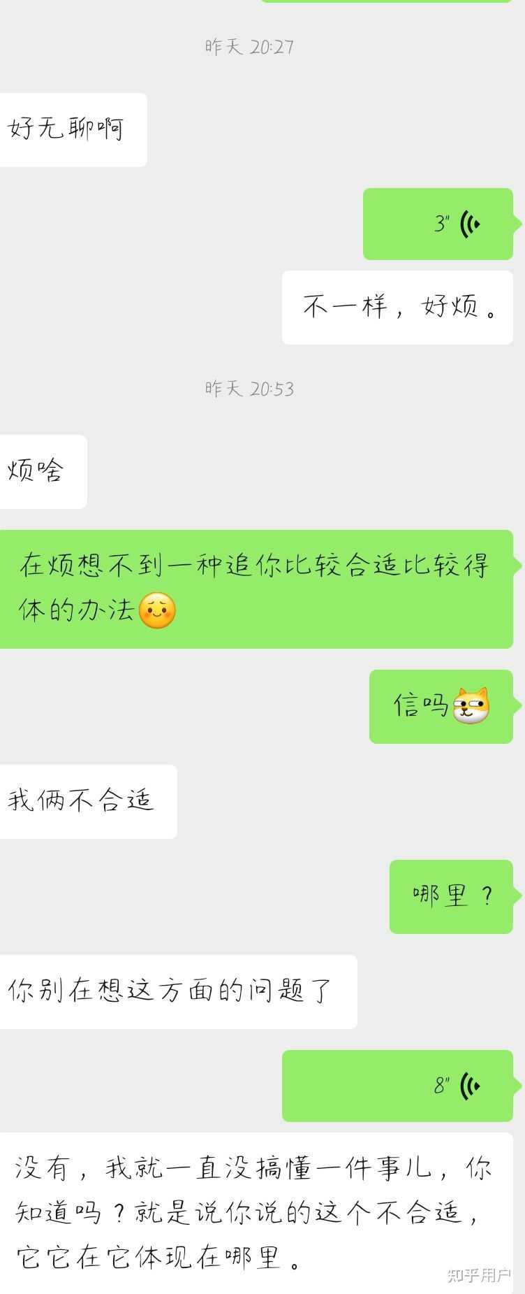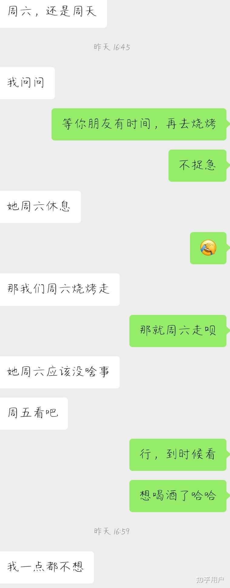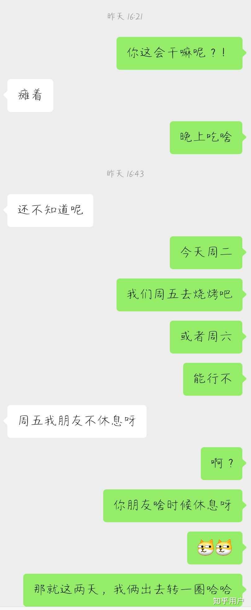 距离和她表露自己内心的真实想法已经过去了三天,怎么说呢…和没表白那会,聊天啊之类的区别不是很大,也有日常的吐槽和下次约饭哈哈,算了 直接上图,各位看官自行琢磨,(有想法有意见的好哥哥好姐姐私信我帮帮孩子吧,是真有点束手无策了)我真的感觉有点无从下手了,或许我现在需要一个契机。