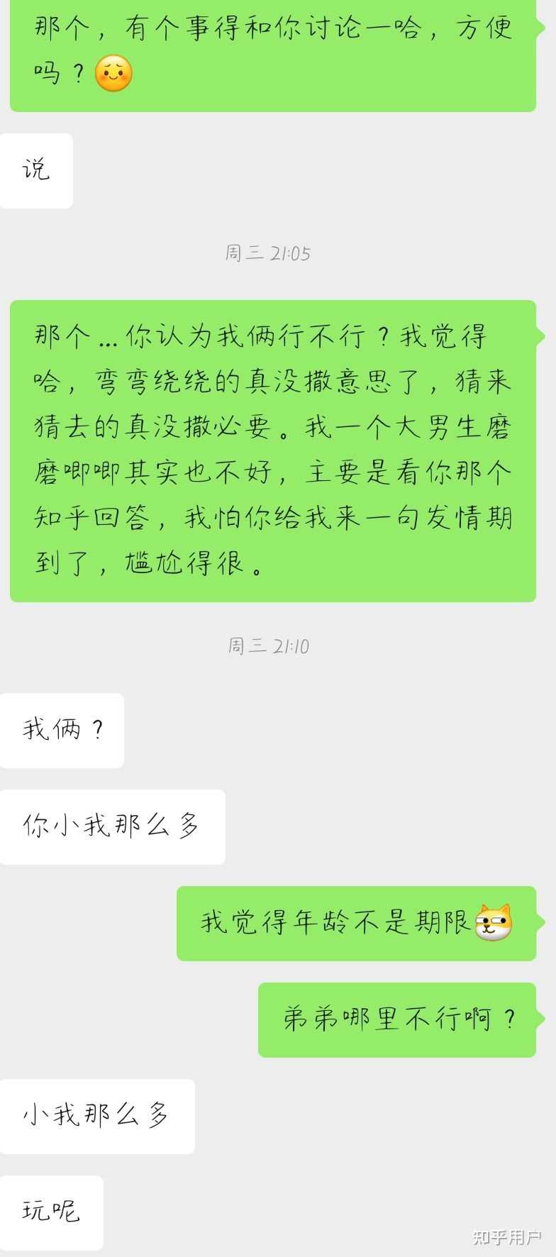 嗯…这是最后一次更新,微信已删除,不会有后续了。虽然结局不咋滴,也算有头有尾的一个交代。小阿姨很好,是个三观很正很理性的一位女性。最后,感谢评论区诸多小伙伴的祝福和分析,也感谢一位西安的姐姐和我分享她的爱情故事,和我讨论小阿姨的心理状态。开头挺好,结局不尽人意。此篇不删。希望诸位他日“冷暖有相知,喜乐有分享,同量天地宽,共度日月长”。快递打电话了,去取之前给她买的护手霜了哈哈哈,留着自用,做一个精致的猪猪男孩(胖胖兄弟萌,减肥啊,不健康不招人待见,快快减肥吧)