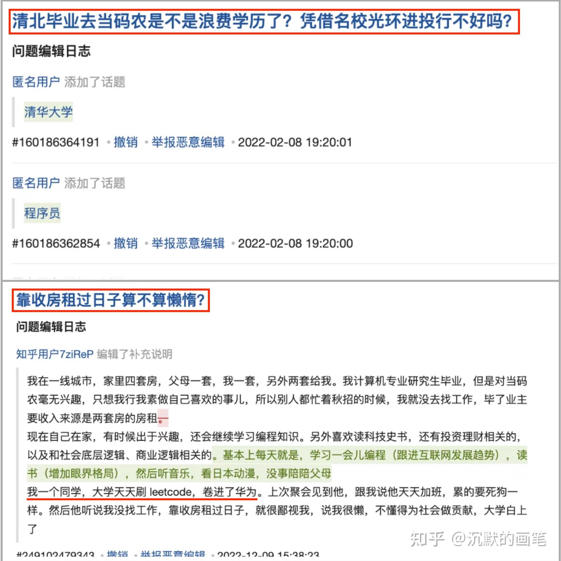 2022/2月:开始怀疑名校毕业做码农是否浪费 。后面说到自己大学同学,天天刷leetcode进华为了,以华为的对应届生的招收标准来看,这个名校很大概率是真的。