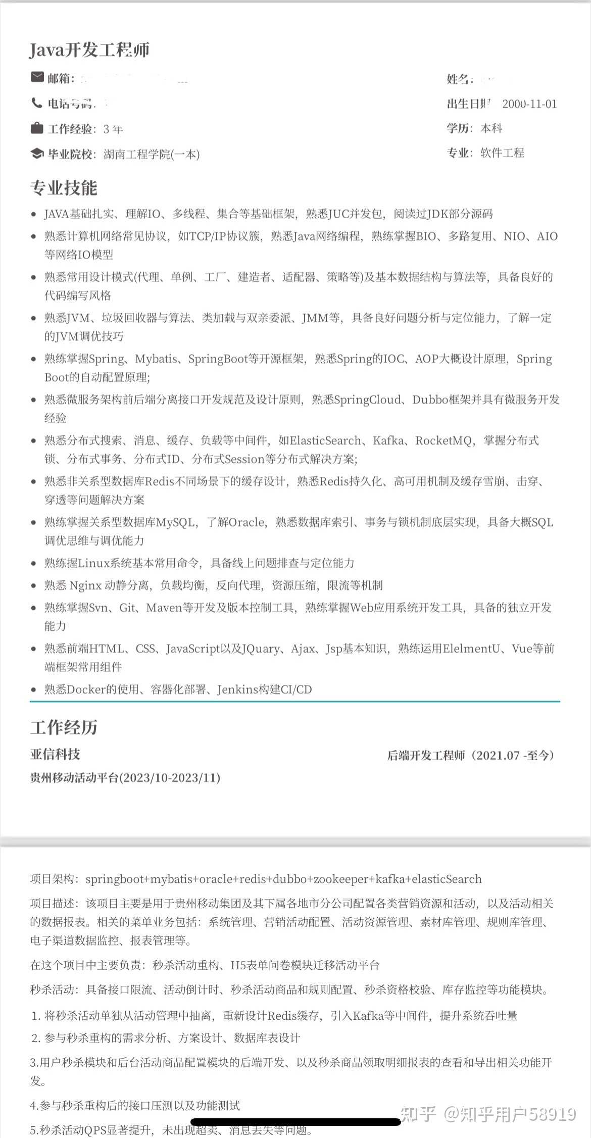 Modeliqi: 技术栈英文单词都有错误的,而且你两三年经验,需要加上jvm调优吗?那些都太虚了。教务管理系统就别写了,项目经验是从最近的开始写,最近的项目放在最前面。个人技能写太多了,一半七八条就行 👍🏽31 💭湖北 🕐2024-01-27 23:36:10