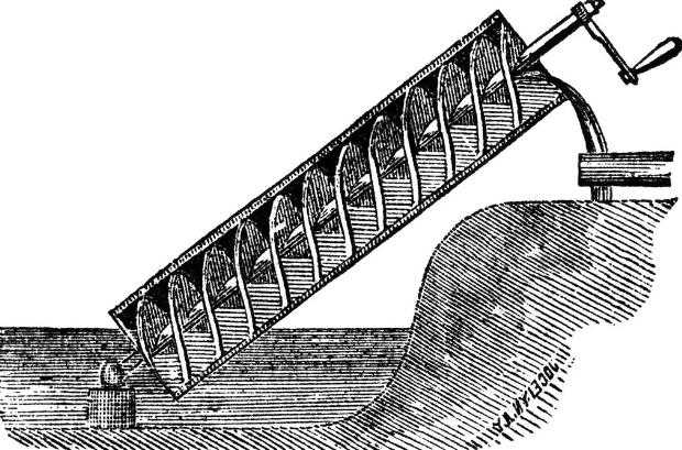 阿基米德螺旋是就这种,它能提水,水流也能推动它