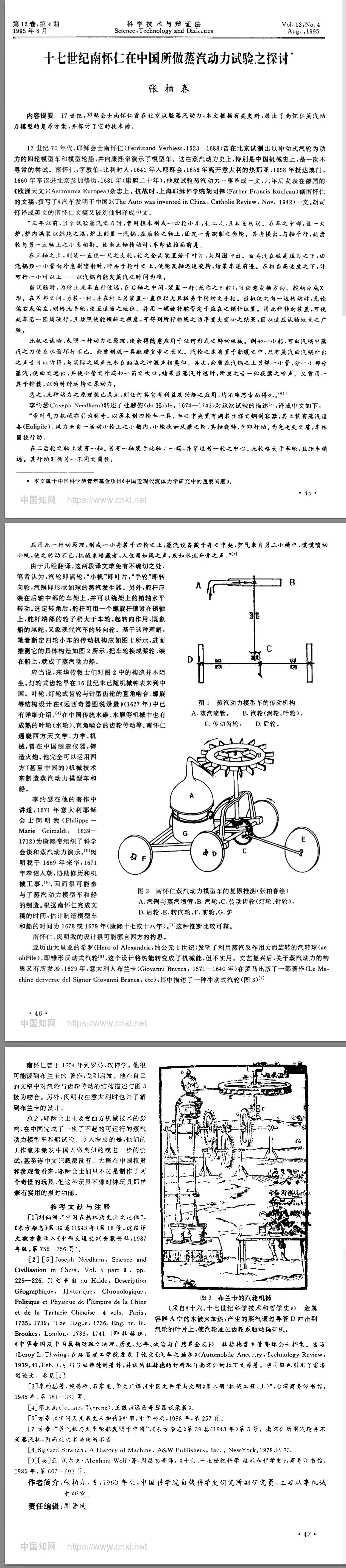 南怀仁3岁的时候(1629年),意大利的Giovanni Branca在他的书《Le Machine》中记录了靠蒸汽冲击旋转的转轮(冲动式汽轮机的雏形)