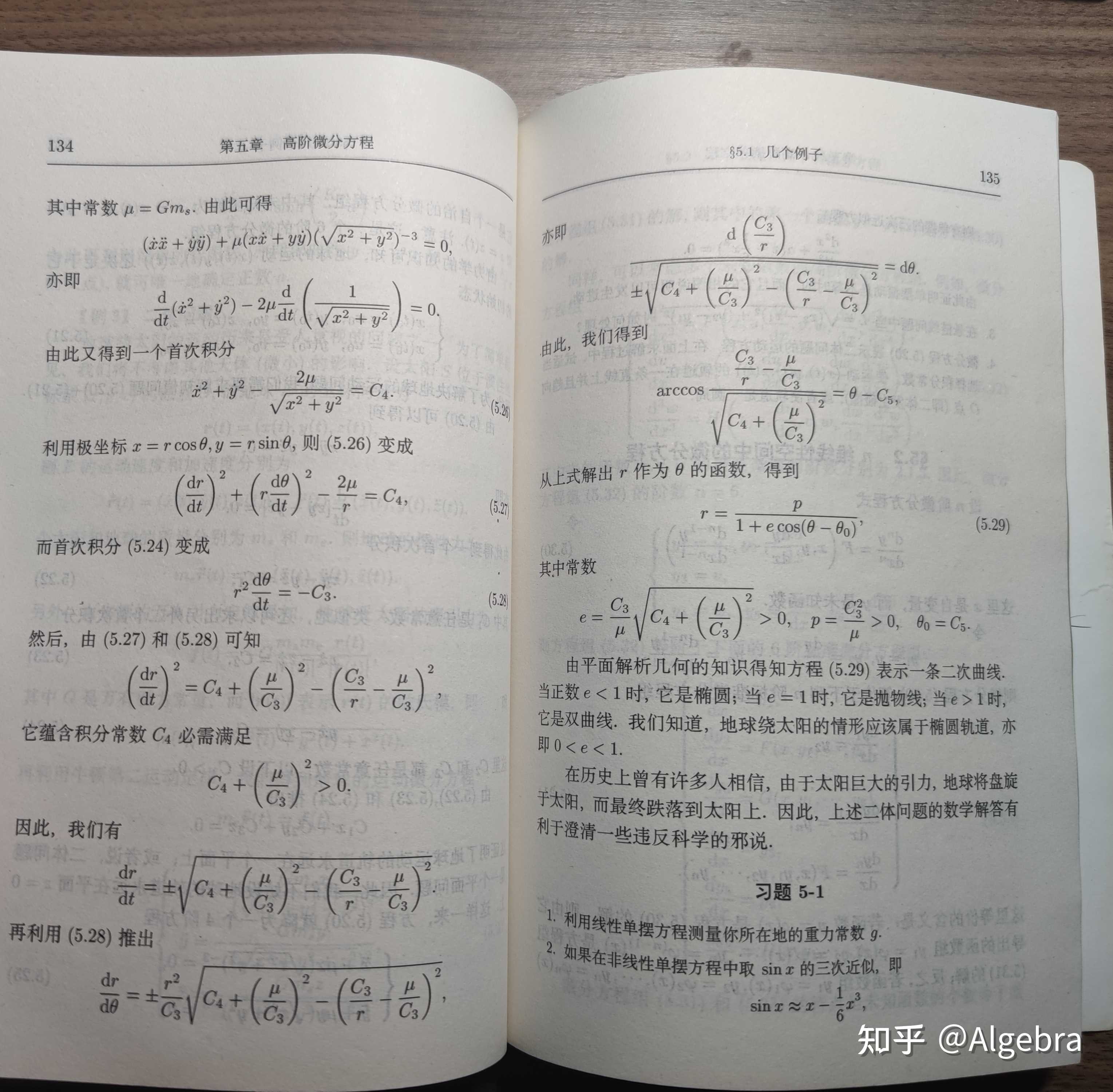 下面这两张图是我大学时的常微分方程课本,里面解决了所谓两个天体在万有引力的前提下,它们的运行轨迹,有兴趣的读者可以尝试看一看。