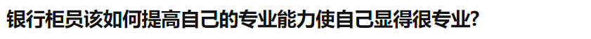 最起码,做了9年的柜员不可能问出“怎么显得专业”这类的问题。