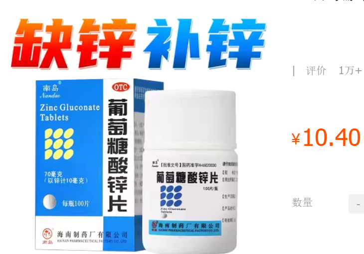 每月20元钙锌片:葡萄糖酸钙/锌片→补足长期的钙和锌的缺口。