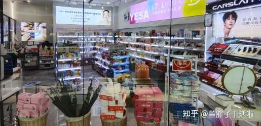 化妆品店几乎没有人,店员是女性,只有男明星照片