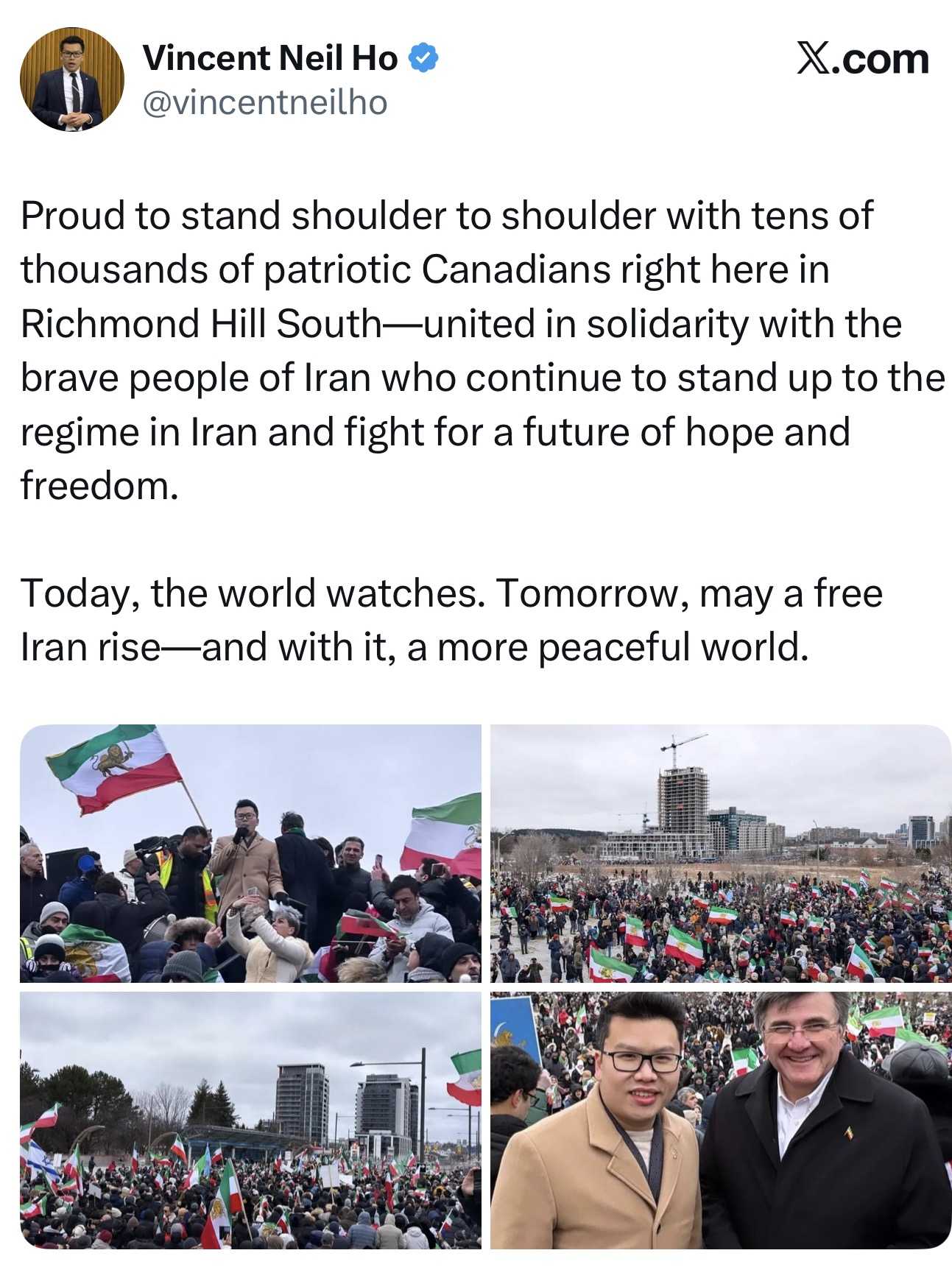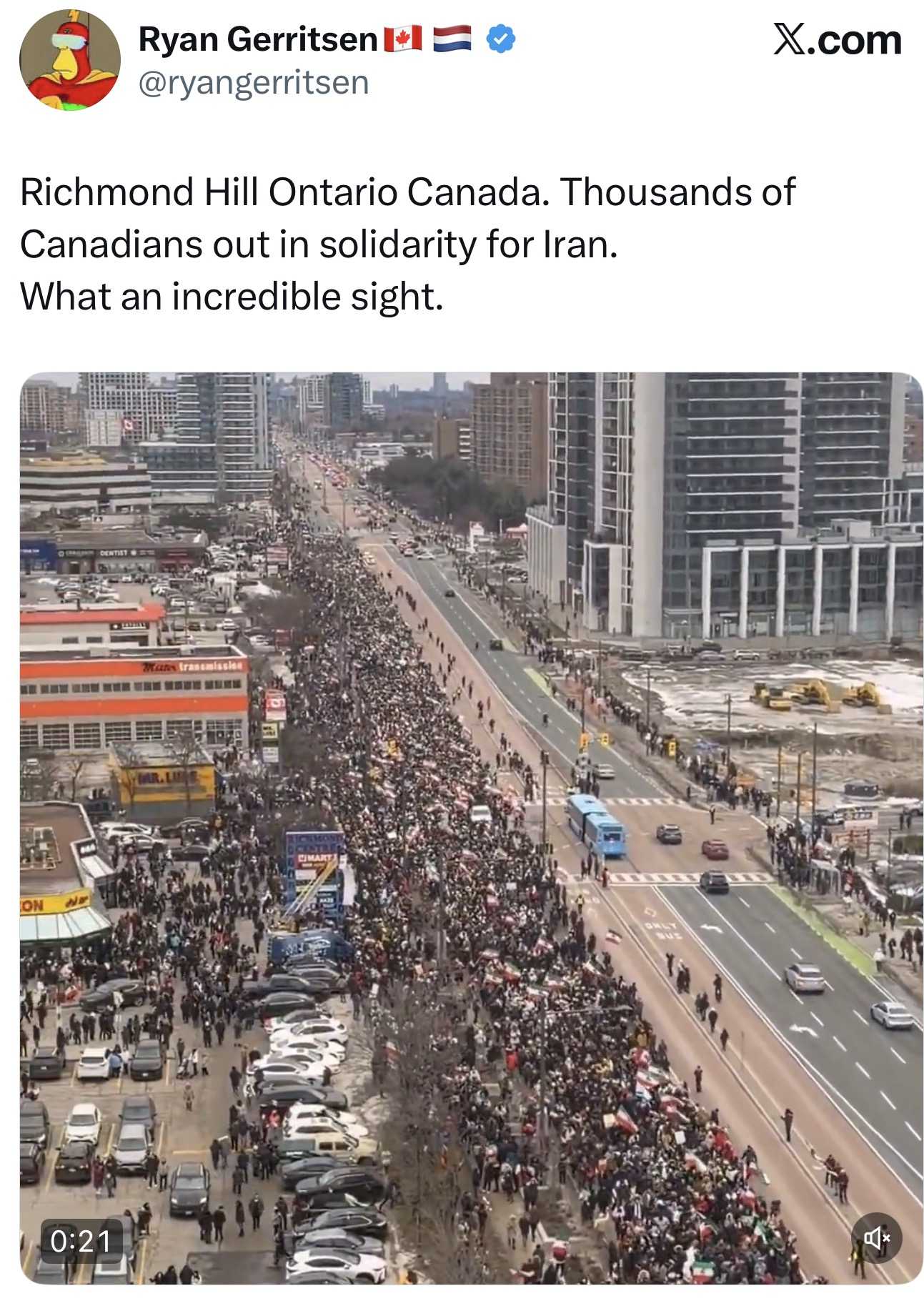 至于Richmond Hill伊朗人现在干嘛,果然不负众望,成千上万人走上Yonge Street(主干道,向南Richmond Hill/多伦多Downtown,向北Oak Ridges/Newmarket)大规模游行,声援伊朗抗议。