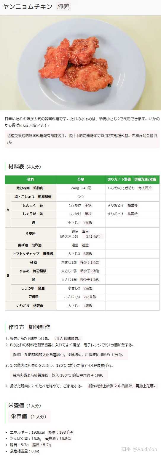 接着,我们研究一下最显眼的这个炸鸡,在“福冈市学校给食公社”官网上可以检索到该菜品的详细配方: